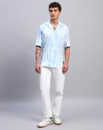 Give your everyday wardrobe a breezy upgrade with this light blue shirt. Designed as a box fit with a vertical printed pattern, it offers a versatile style that transitions seamlessly from casual outings to laid-back weekends. Complete with half sleeves and a spread collar, it’s perfect worn solo or layered for an easy, refined look.