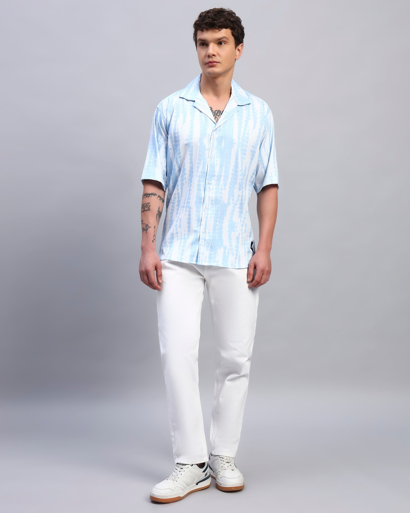 Give your everyday wardrobe a breezy upgrade with this light blue shirt. Designed as a box fit with a vertical printed pattern, it offers a versatile style that transitions seamlessly from casual outings to laid-back weekends. Complete with half sleeves and a spread collar, it’s perfect worn solo or layered for an easy, refined look.